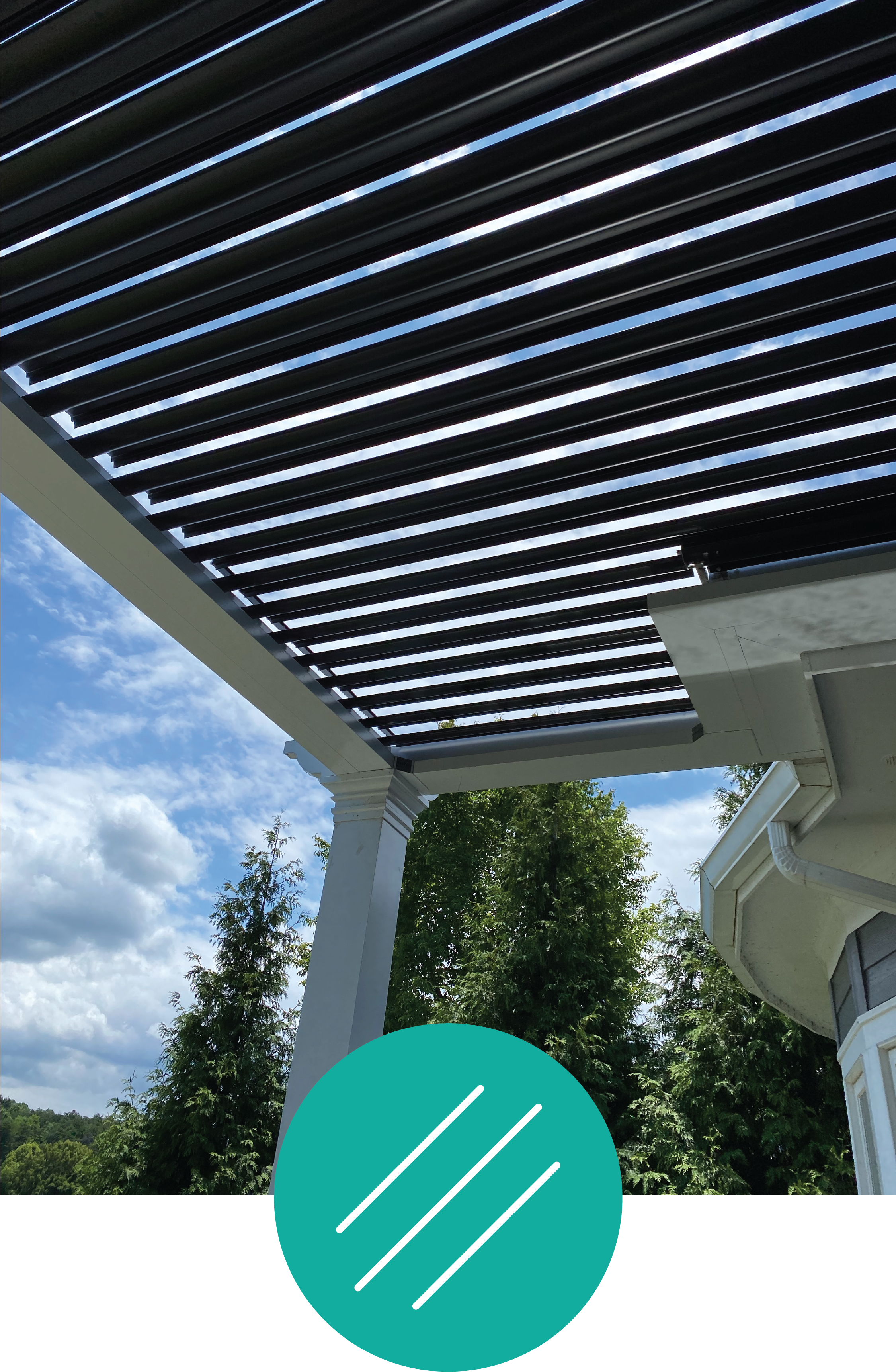 StruXure's pivot design gives a full 170° range of motion to give you control of your outdoor space.